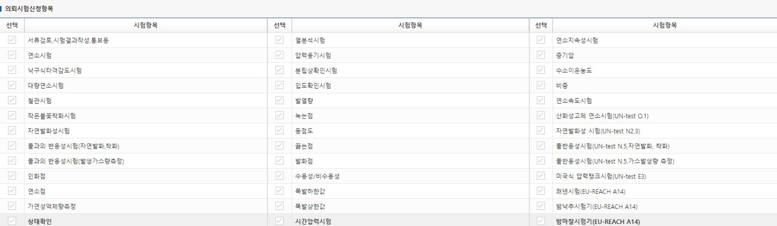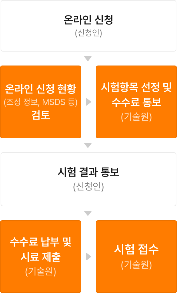시험항목 선정 가능 ··· 시험담당자의 물질정보, MSDS 검토 등을 통하여 시험항목이 조정될 수 있음
