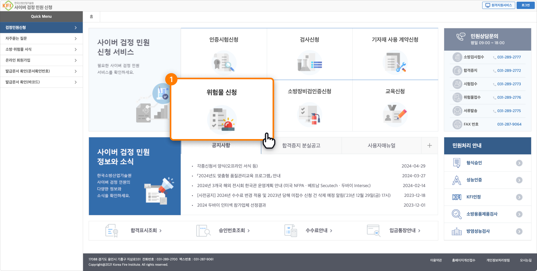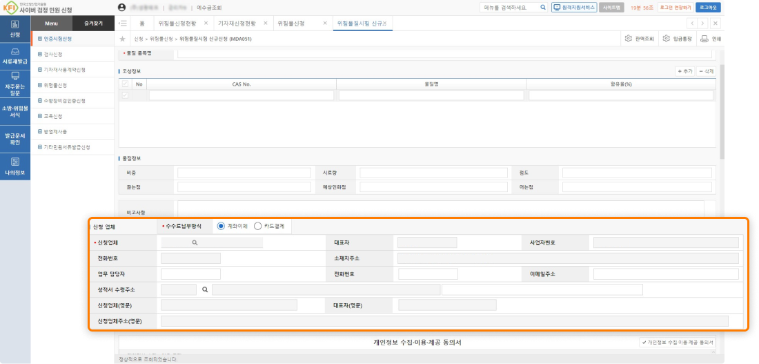 위험물판정시험 중 해당 시료의 위험물 류(類)별 판정을 위하여 추가 시험을 진행할 수 있으며, 이에 따른 시험 수수료가 추가 발생할 수 있음